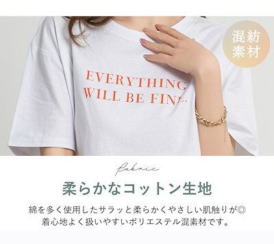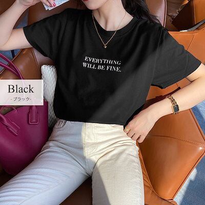 Tシャツ レディース 半袖 カジュアル おしゃれ ゆったり カットソー 黒 白 大きいサイズ 春夏 薄手 プリント ロゴT ワンポイント ラウンドネック ミドル丈 ストレッチ カラフル 普段着 デイリ