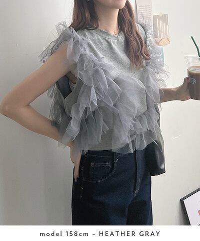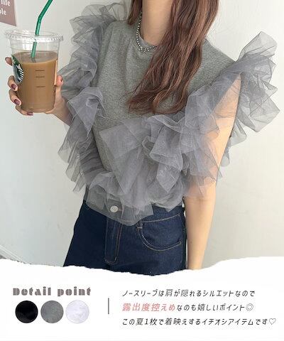 OFFクーポン利用で高評価レビュー!【予約】【動画あり】トップス カットソー ノースリーブ チュール ドッキング レディース 夏 カジュアル ゆったりサイズ ラフ シンプル 大人