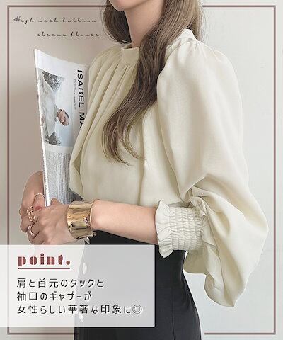 ブラウス 入学式 白 長袖 レディース 長袖 XL 卒業式 オケージョン オフィス ハイネック リボン 上品 バルーン袖 フリル YP/ ハ