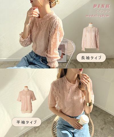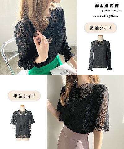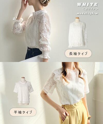レース ブラウス 白 長袖 結婚式 二次会 オフィスカジュアル 半袖 春 入学式 卒業式 総レース フォーマル オケージョン シースルー シャツ ハイネック YP/