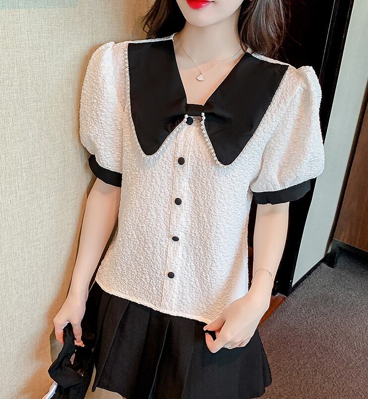 【大きいサイズM-4XL】【春夏新作】ファッショントップス♪ホワイト/アンズ2色展開◆