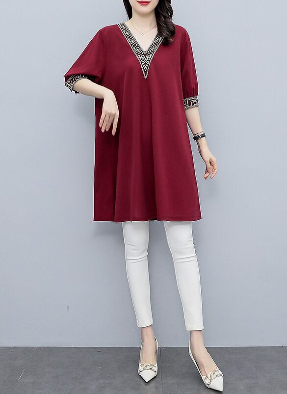【大きいサイズL-5XL】【春夏新作】ファッショントップス♪ブラック/アカ2色展開◆