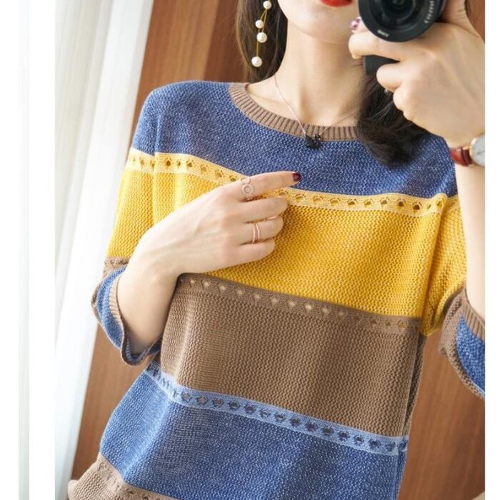初回送料無料 動画あり 2024新作 レディース トップス サマーニット トップス プルオーバー ボーダー