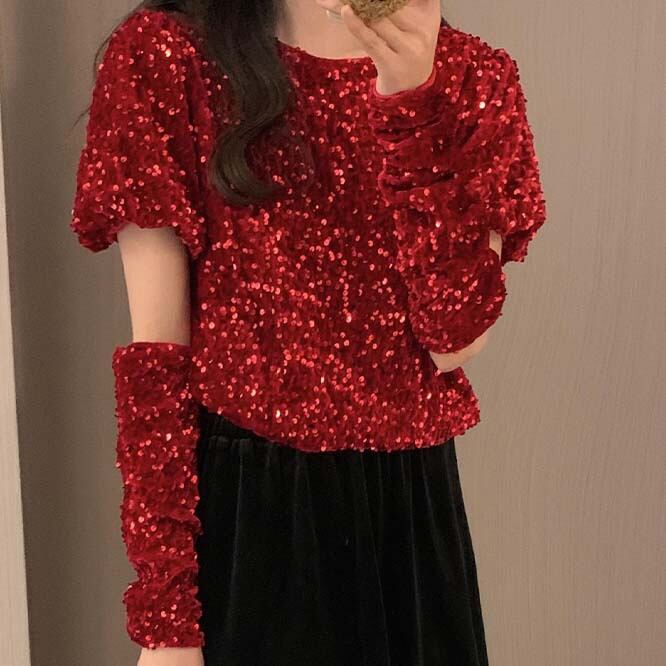 【2024春新作】韓国風レディース服 春 トップス スパンコール シャツ おしゃれ 長袖 トップス