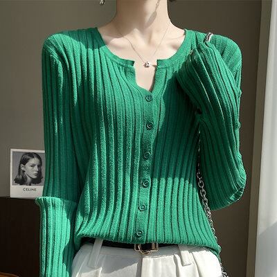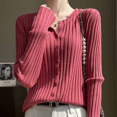 ニットカーディガン ラウンドネックワイドストライプニットカーディガンアウター女性ジャンパーの2024新しいニットセーター韓国語バージョン