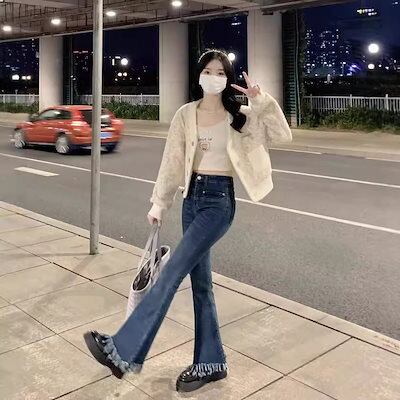 ニットカーディガン Vネックショートジャンパージャケット女性2024秋の新しい気質長袖ニットカーディガン