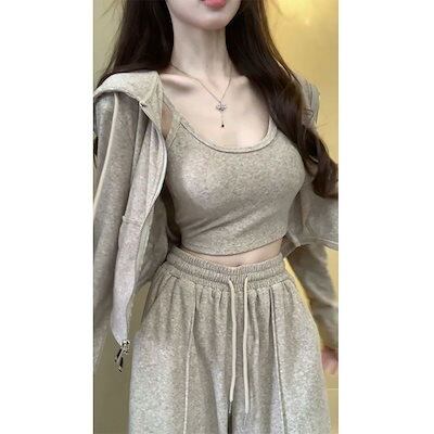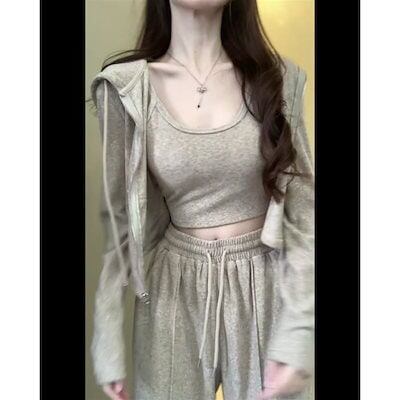 セットアップ 2024新作スリーピースレディースカジュアルフード付きジャケットファッションスーツ