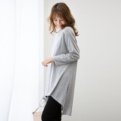 ロンT 新しい緩いビッグヤード長袖Tシャツレディースミドルレングスラウンドネック不規則なロングオープンTシャツ女性