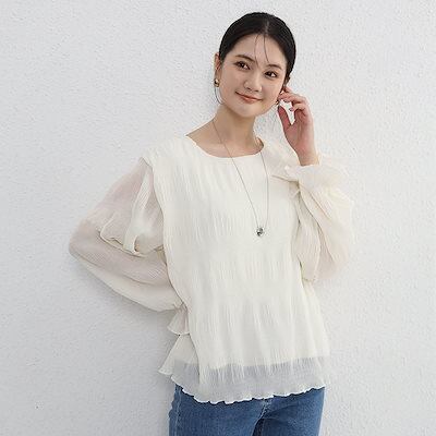 ロンT シフォントップス プルオーバー 長袖 ゆったり 丸首 2024 春 秋 無地 長袖Tシャツ