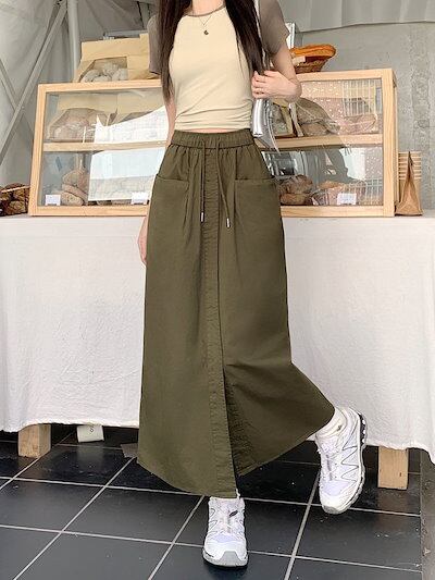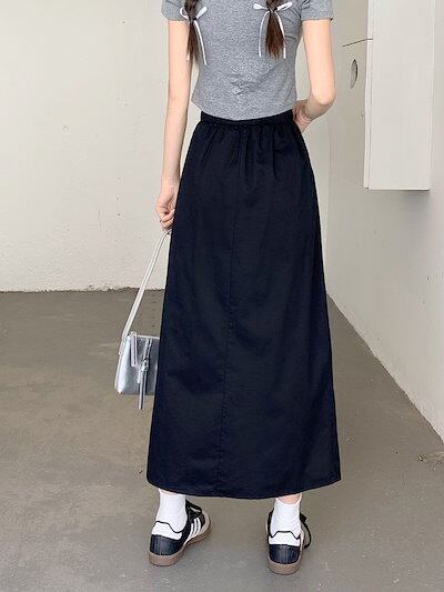 マキシスカート ドレープハーフスカートレディース2024夏ファッション韓国デザインオープンハイウエスト薄手ワークウェアミディアム丈スカート