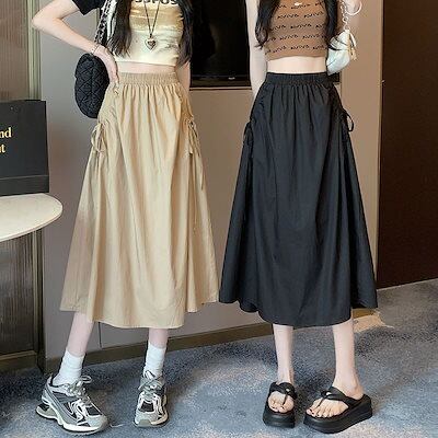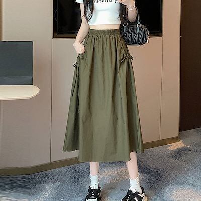 マキシスカート 夏のレースアップドローストリングワーク半身スカート女性2024新しい弾性ウエストミディアムレングスラインスカート