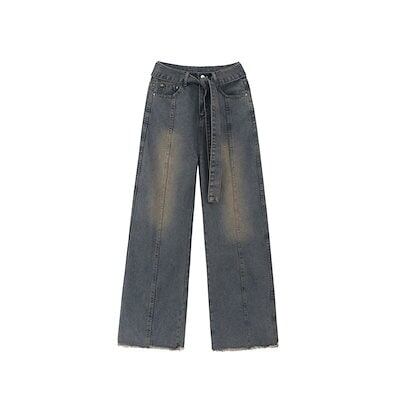 デニムパンツ ジーンズ レディース 2024新作 ハイウエストルーズ生エッジパンツ デニムワイドパンツ