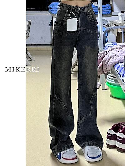 デニムパンツ マイクロフレアージーンズ 女性 大きいサイズ ハイウエスト ゆったり ワイドパンツ