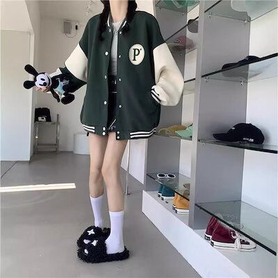 ジャケット・ベースボールシャツレトロヒットカラー野球ジャケットジャケット女性2024新しい百ルーズカジュアルジャケットトップス