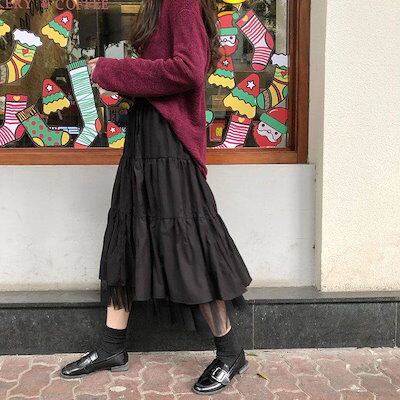 マキシスカー プリーツスカートタイトスカートふわっとフレアスカート韓国ファッション 可愛い 夏 新作ゆったり メッシュ半身スカート