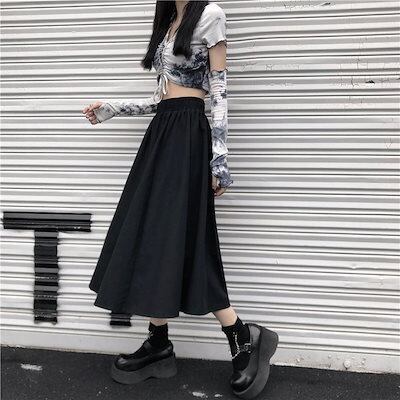 マキシスカー プリーツスカートタイトスカート 夏 新作 韓国ファッション 百掛け無地ロングスカート