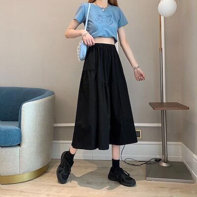 マキシスカー プリーツスカートタイトスカートふわっとフレアスカート 新作百掛け 可愛い ハイウエストロングスカートミドル丈ハーフスカート