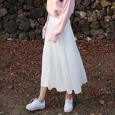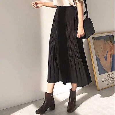 マキシスカー プリーツスカートタイトスカートふわっとフレアスカートシフォンハーフスカート新作韓国ファッションハイウエストスカート