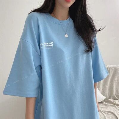Tシャツ 半袖ミディアム丈 新作 学生 百掛け 夏 半袖ゆったりトップス Tシャツカットソー