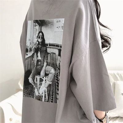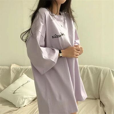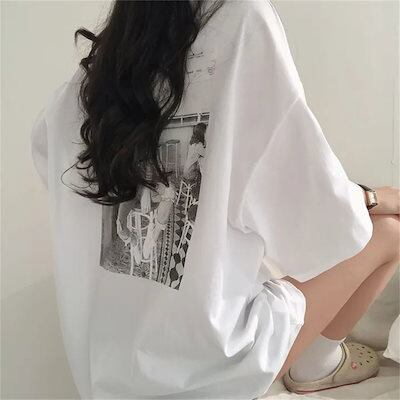 Tシャツ ブラウス半袖 韓国ファッション 新型 ゆったり 半袖 夏 ミディアム丈トップス Tシャツカットソー