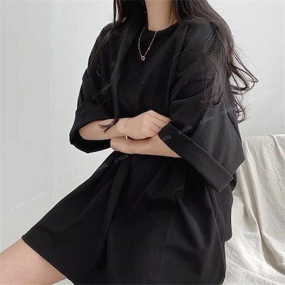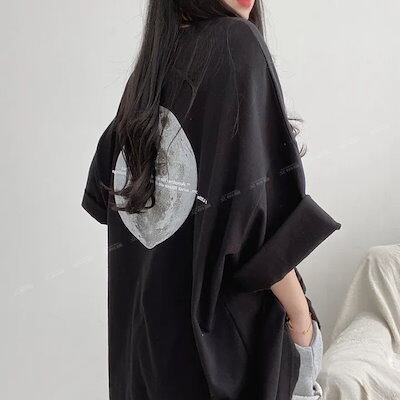 Tシャツ 女子 夏 学生 ゆったりミディアム丈トップスins風ゆったり半袖 Tシャツカットソー
