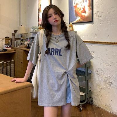 Tシャツ 韓国ファッション 半袖Tシャツ夏のゆったりミディアム丈半袖トップス Tシャツカットソー