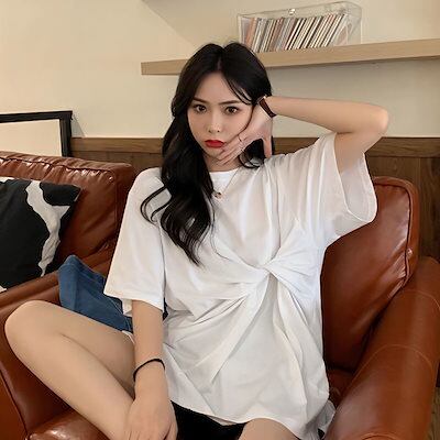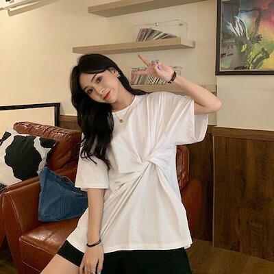 Tシャツ 夏 韓国ファッション 新作ゆったりトップス半袖Tシャツinsトップス Tシャツカットソー