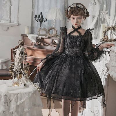 ロリータ オリジナルopデイリーキュートロリータダークゴシック風長袖ワンピース