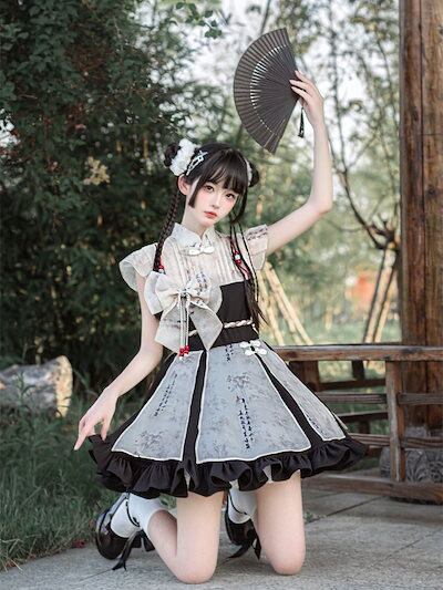 ロリータ リボンロリータワンピース夏の新作キルティングショートスカート