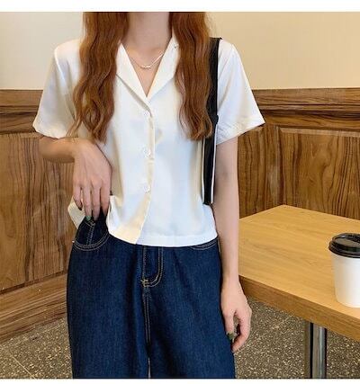 今っぽシアーシャツ ショート丈トップスデザイン感シフォンシャツ夏 新作 半袖シャツ シースルートップス