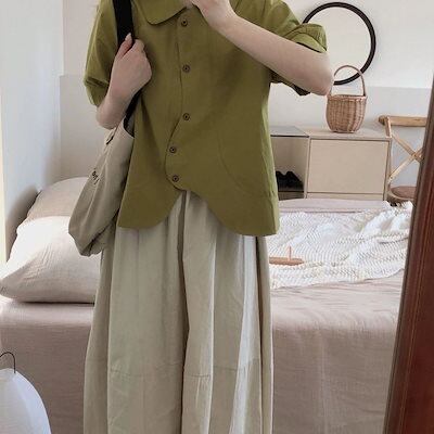今っぽシアーシャツ 夏 韓国ファッション 新デザイン不規則な半袖シャツ シースルートップス