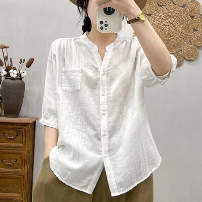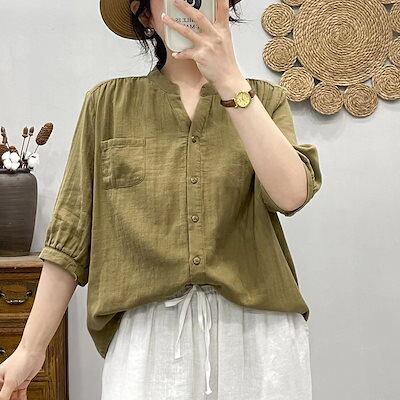 今っぽシアーシャツ オリジナルシンプル薄手シャツ夏 新作ゆったりVネックファッション百掛け中袖シャツ シースルートップス