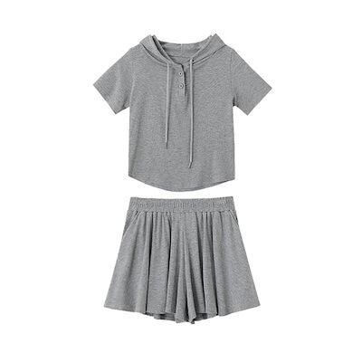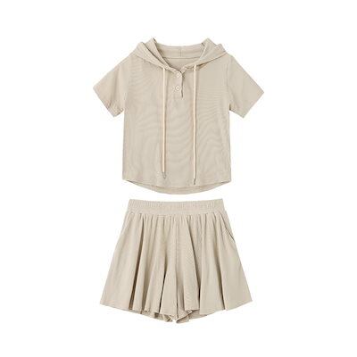 涼しく楽ちんセットアップ ins風キュロットスーツ夏の新作キャップ付きトップスショートパンツファッションカジュアル2点セット