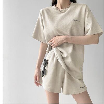 涼しく楽ちんセットアップ ゆったりスポーティーな半袖半ズボン2点セット夏の薄手丸首Tシャツカジュアルスーツ