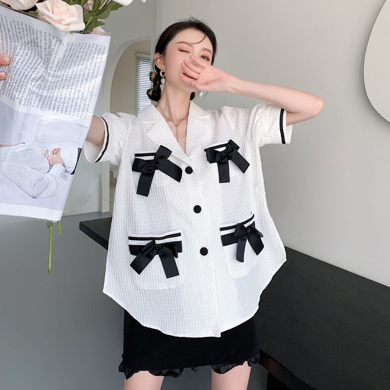 拘りの、大人可愛いデザイン 半袖 シャツ 夏新作 ゆったり 上着 トップス レディース 韓国ファッション