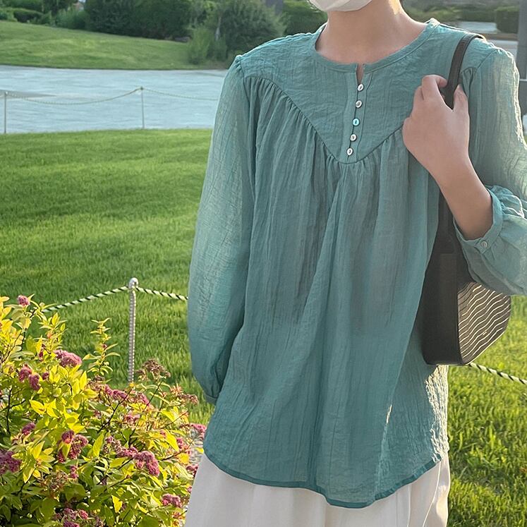 高レビュー 夏 ラウンドネック しわ加工 シャツ 上着 日焼け止め トップス レディース 韓国ファッション