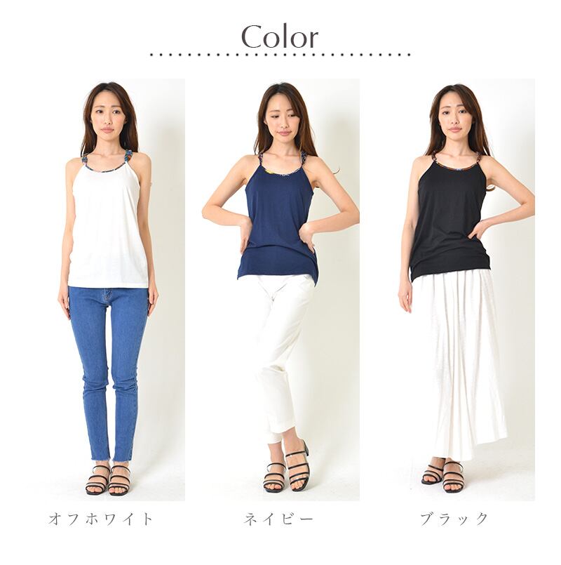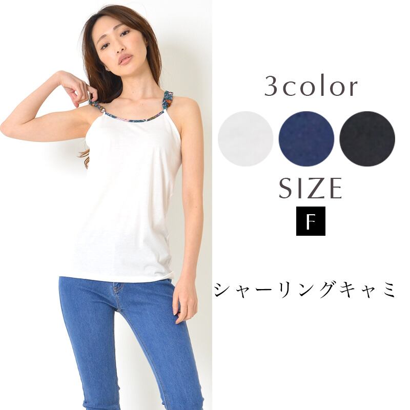 キャミソール F レディース トップス インナー 肩ヒモシャーリング 綿混 無地 大人カジュアル おうちコーデ