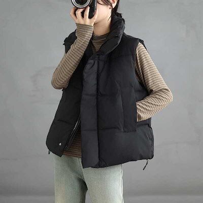 「ファットガール」 2024秋冬新品 ダウンベスト ファスナー スタンド襟 大きいサイズ 体型カバー レディース ダウンジャケット ダウンコート アウター メガ割30%までに制限