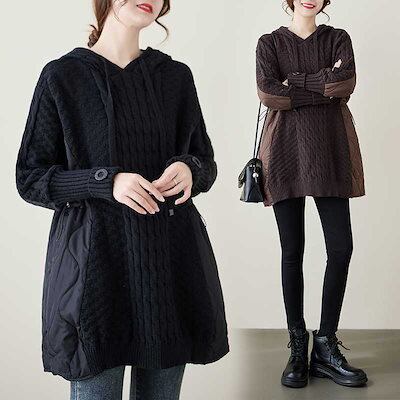 「ファットガール」 2024秋冬新品 ロングニット ドッキング ニットパーカー 大きいサイズ 体型ーカバー レディース セーター メガ割30%までに制限