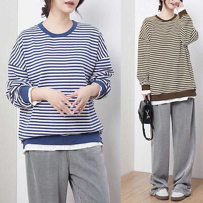 「ファットガール」 2024秋冬新品 レイヤード ブラウス スウェット ボーダーシャツ 大きいサイズ 体型カバー レディース メガ割30%までに制限