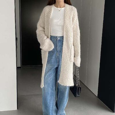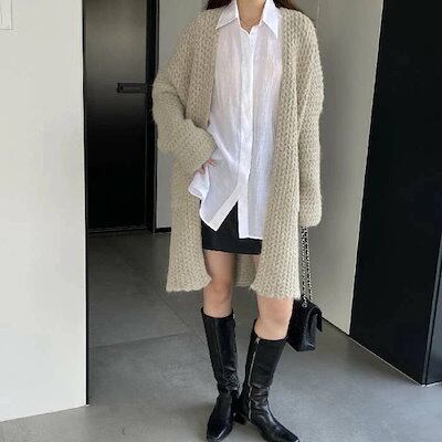 カーディガン ニット レディース ロング丈 秋 冬 ポコポコ ロングカーディガン ニットカーディガン カーデ ふわふわ コート アウター 厚手 あったか ニット セーター もこもこ 大人可愛い 上品