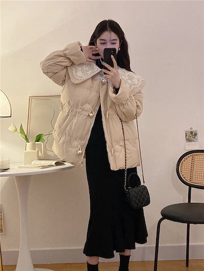レース ベビーネック 綿入れ アウター レディースファッション 冬服 ゆったり 百掛け 長袖トップス 中綿コート カジュアル ジャケット