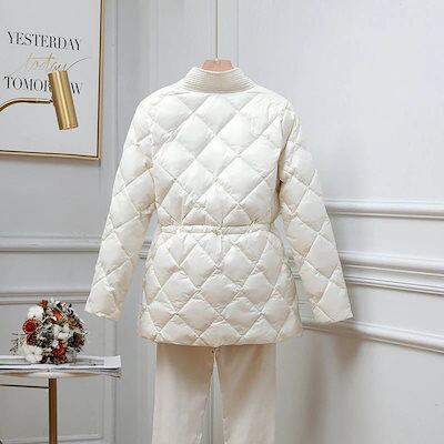 秋冬の新作菱格綿服レディースミドル丈ビッグVネック韓国版ウエスト引き締め レディースコート ウォーム ジャケット