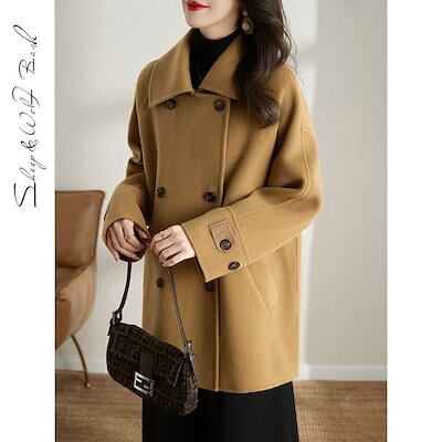 韓国ファッション ラシャ シンプル セミロング ホーンバックル 秋冬 流行り コート 気質 OL通勤 トップス スーツ襟 レディース ジャケット