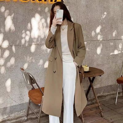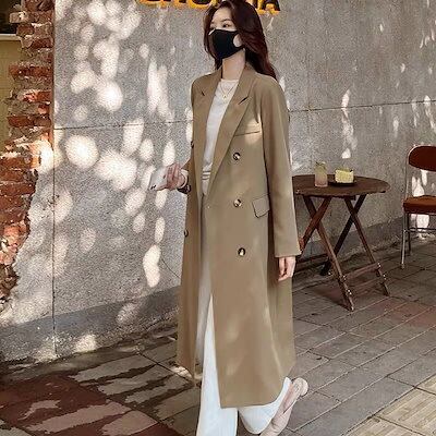 秋冬 アウター コート スーツジャケット 高品貭 トレンチコート ロング丈 スリミング トップス ロングコート 着痩せ アウター レディース