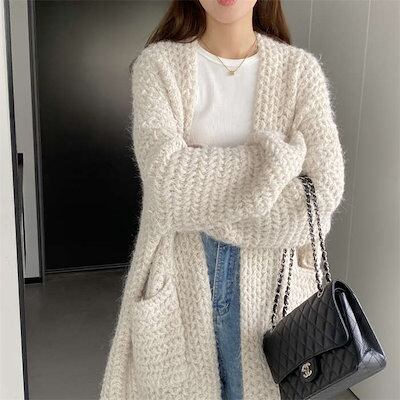 カーディガン レディース 秋冬 厚手 ニット ゆったり ニットコート カーデ 秋服 ニットカーディガン アウター ロング コーディガン ロングカーディガン 長袖 暖かい オーバーサイズ おしゃれ ポ