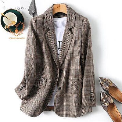 入荷 レディース スーツジャケット テーラードジャケット 春秋コート ビジネススーツ 通勤アウター 春秋新作 上着 オフィス 上品 チェック柄 韓国風