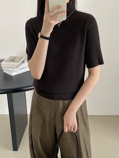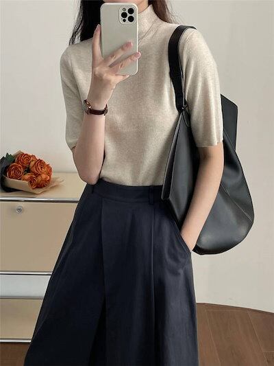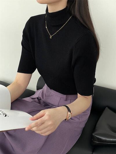 ニット セーター 秋 レディース 5分袖 フォーマル ニットトップス ニットtシャツ プルオーバー ハイネック ニット トップス 体型カバー シンプル 春秋 秋冬 上品 着回し きれいめ スーツ イン