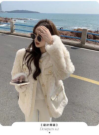 2024年新作入荷韓国ファッションファーコートアウター レディース 秋冬ゆったりニットボタンシングルブレスト