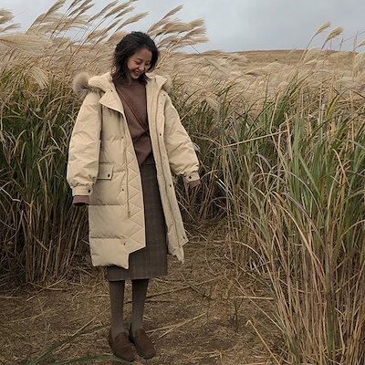 レディース2024新作韓国風ゆったりミドル丈コットンコート冬厚みオーバーサイズ